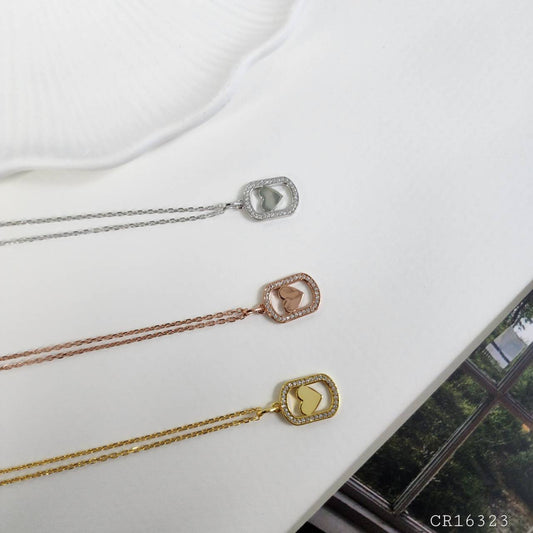 White Cubic Zirconium Sterling Silver Necklace Plain Style and Bezel Style