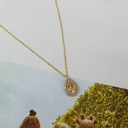 Sterling Silver Tear Drop Citrine CZ Necklace in 18ct Gold Plating