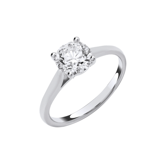Sterling Silver 4 Claw Single Stone Brilliant Cut CZ Ring