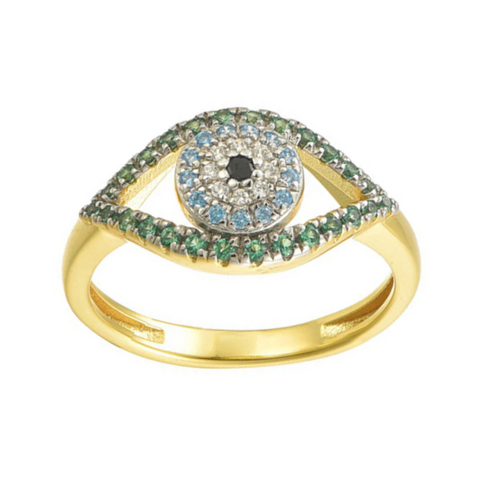 Gold-plated Silver Green Blue Black CZ Anti Envy Evil Eye Ring
