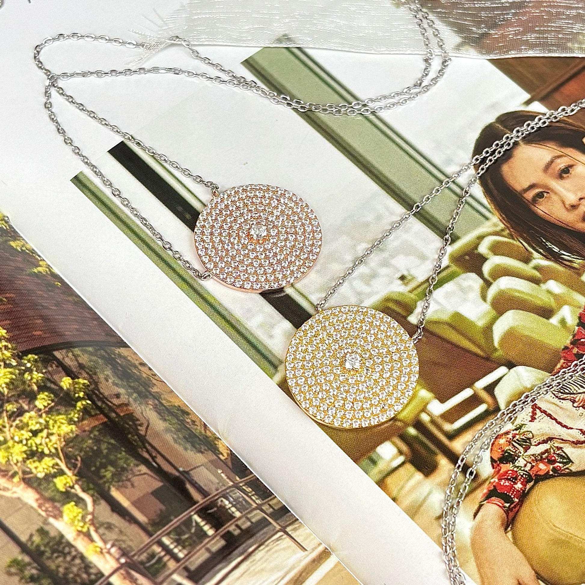 Gold Circle Sterling Silver Necklace with Cubic Zirconium