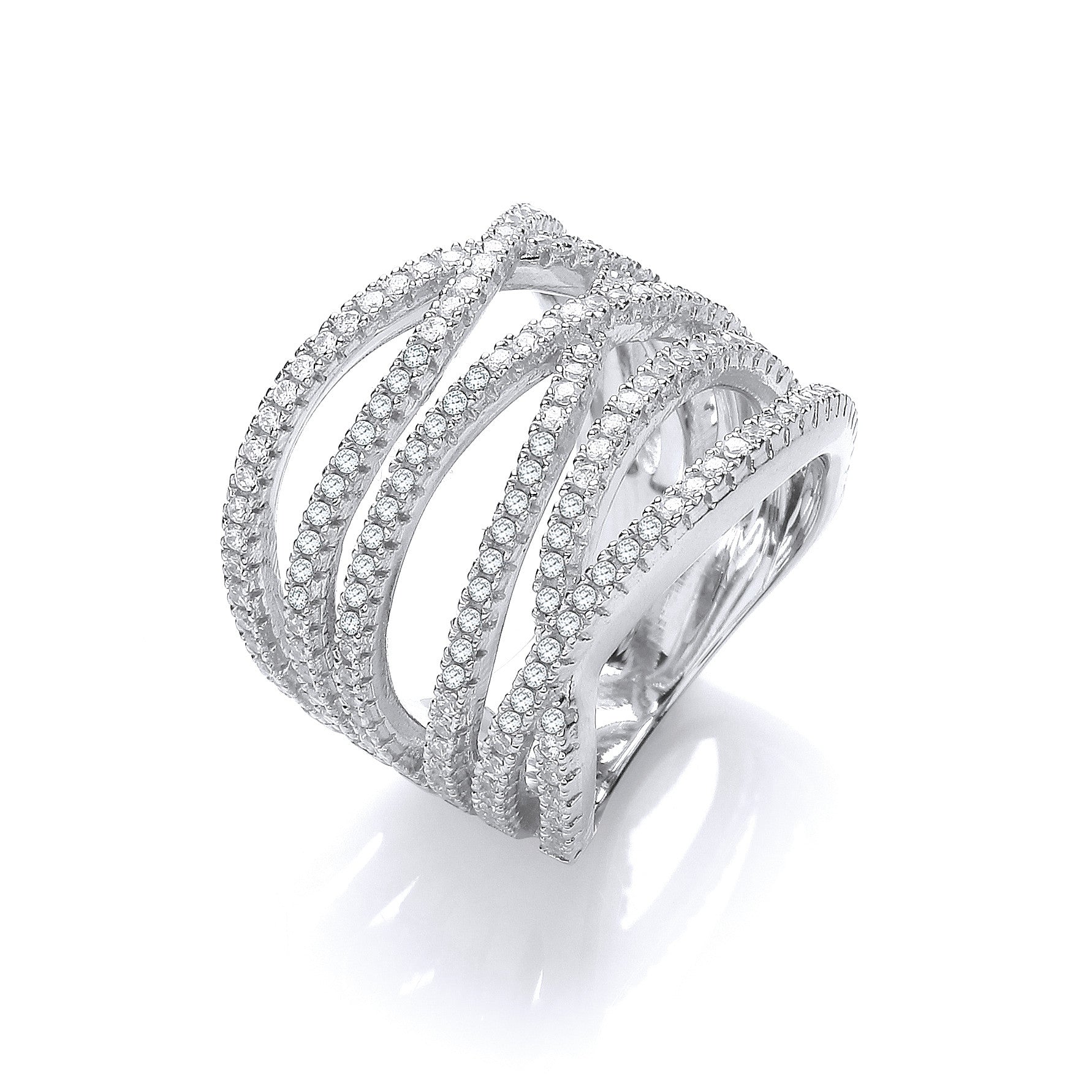Micro Pave' Six Rows of Clear Cz Silver Ring
