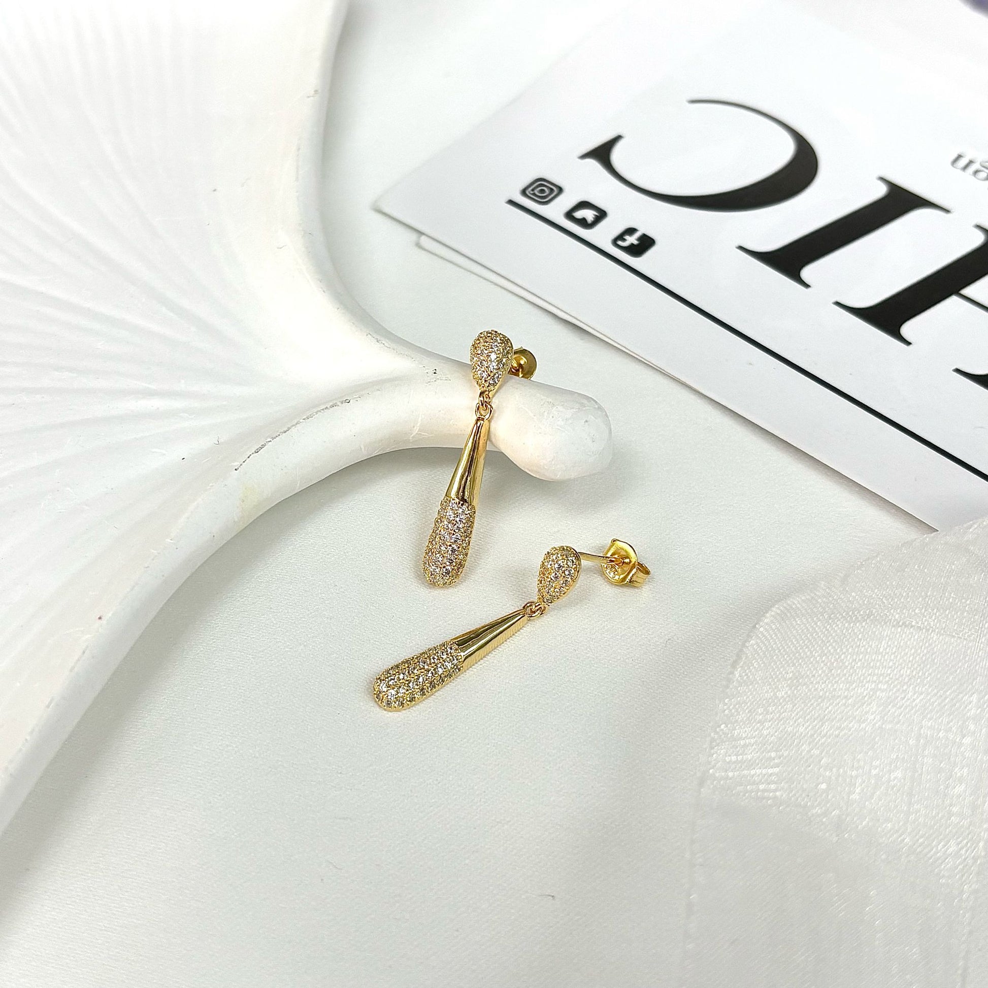 Silver Dangle Elegant CZ Drop Earrings in 18ct Gold Plating
