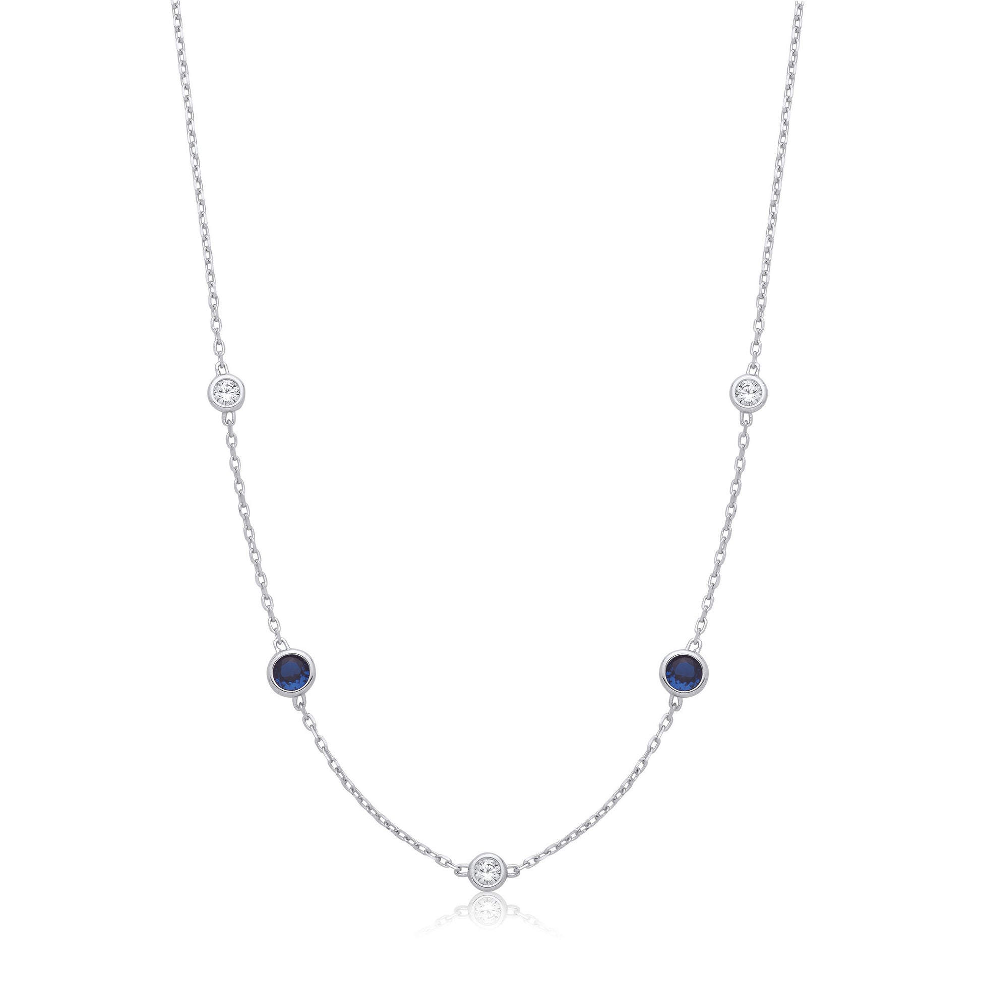 Silver Rh.Plated Rubover 5 Blue & Clear Cz's Necklace