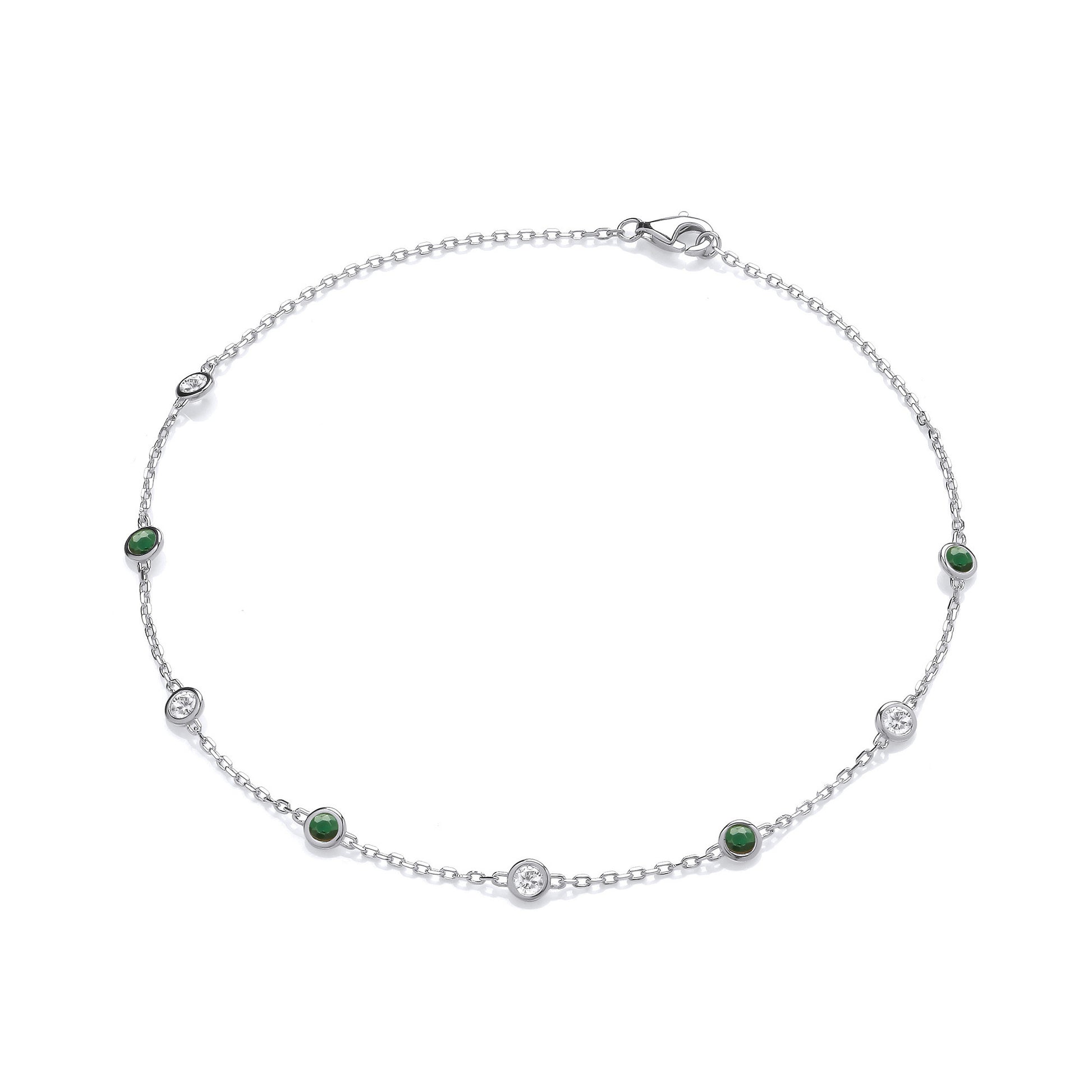 Silver Rubover Green & Clear Cz's Ladies Anklet